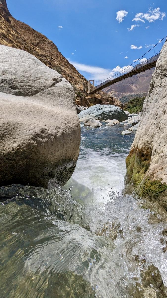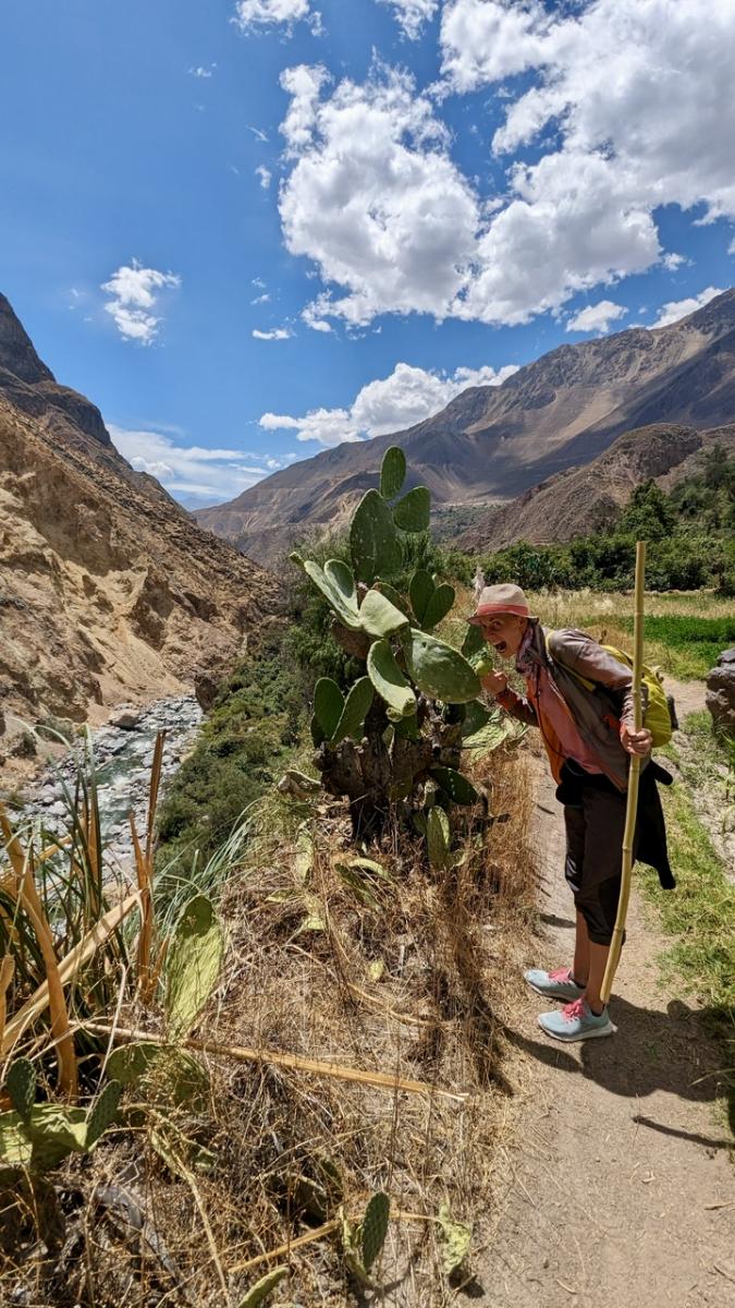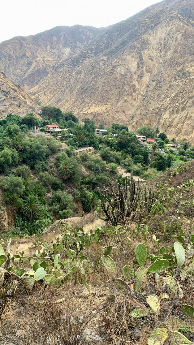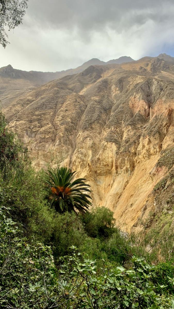 Insgesamt legen wir an diesem Tag ca. 1.800 Höhenmeter zurück: Vom Canyon Gipfel runter zum Fluss, nochmal halb nach oben und schließlich wieder runter bis zu unserem Schlafdomizil: Sangalle, die Oase des Canyons. Von karger Felslandschaft über ewig weite Kakteenfelder finden wir uns nun umgeben von Palmen und Wasser wieder am tiefsten Punkt des Canyons.