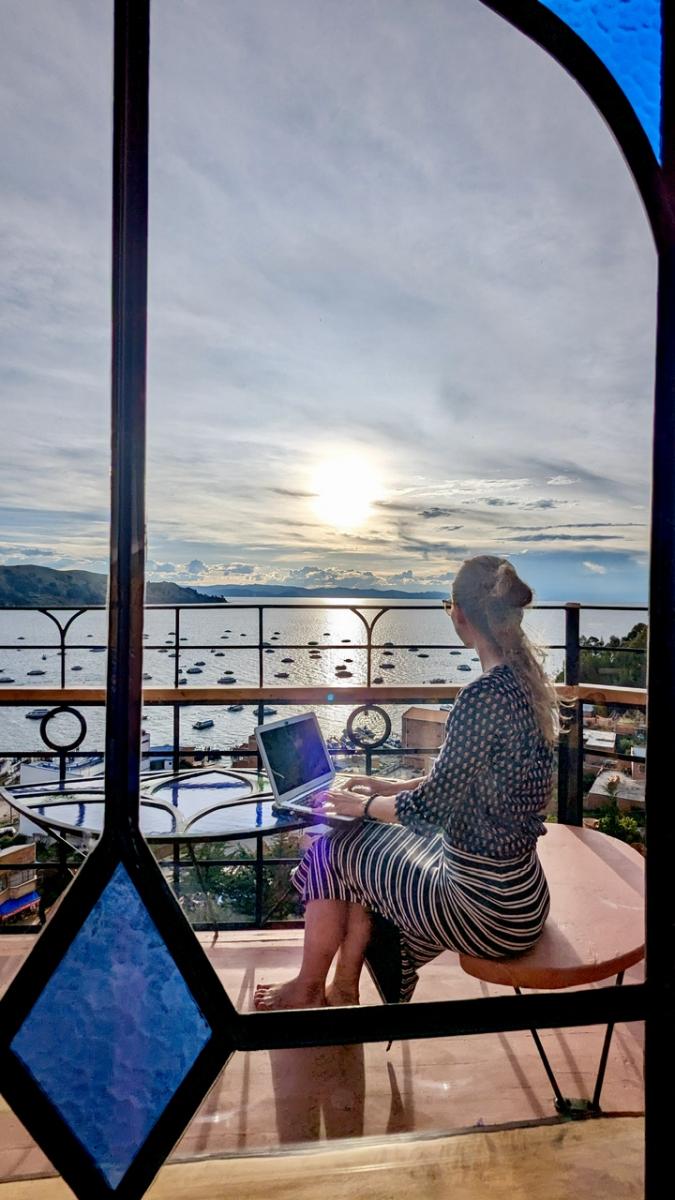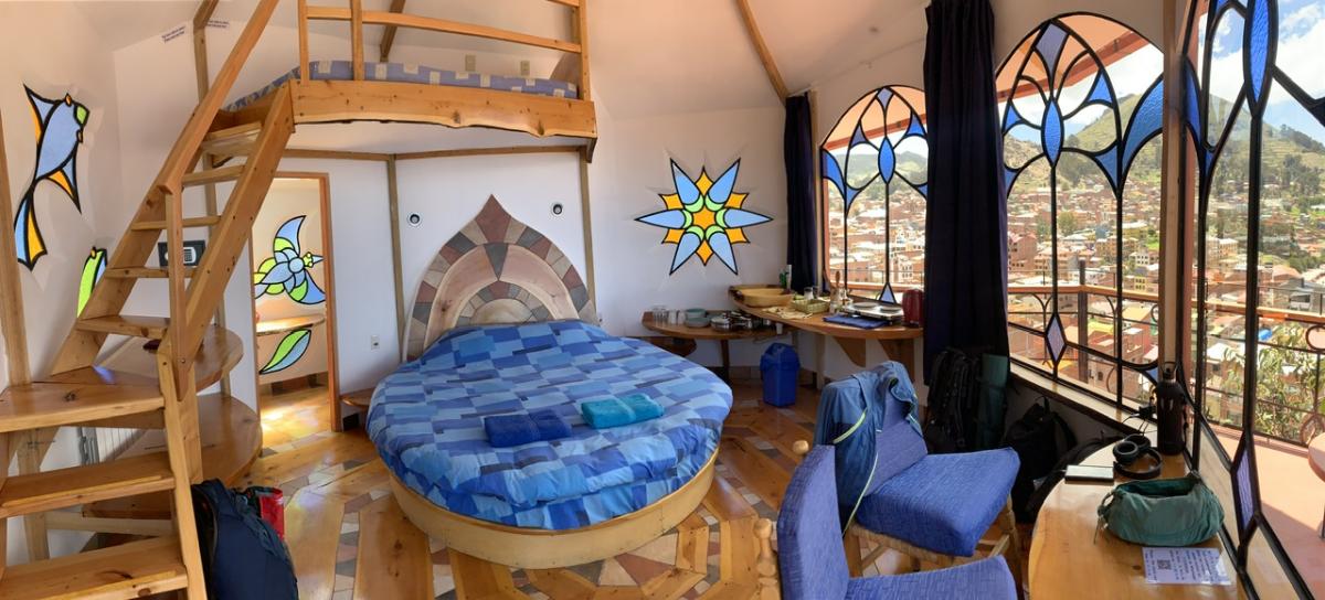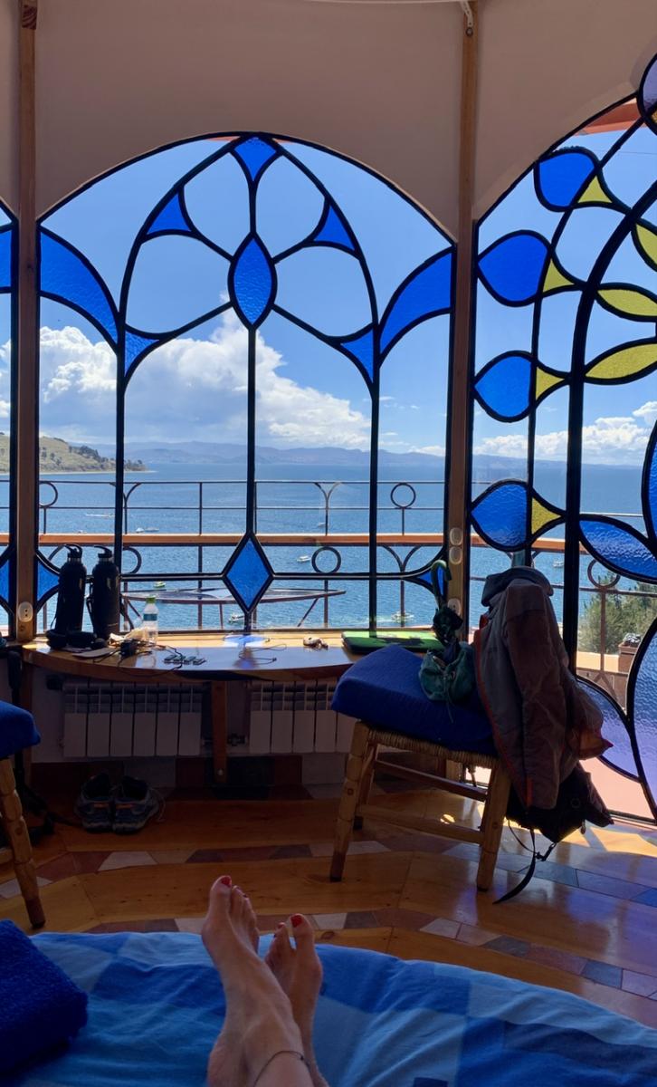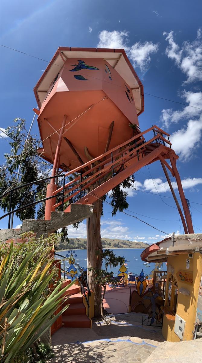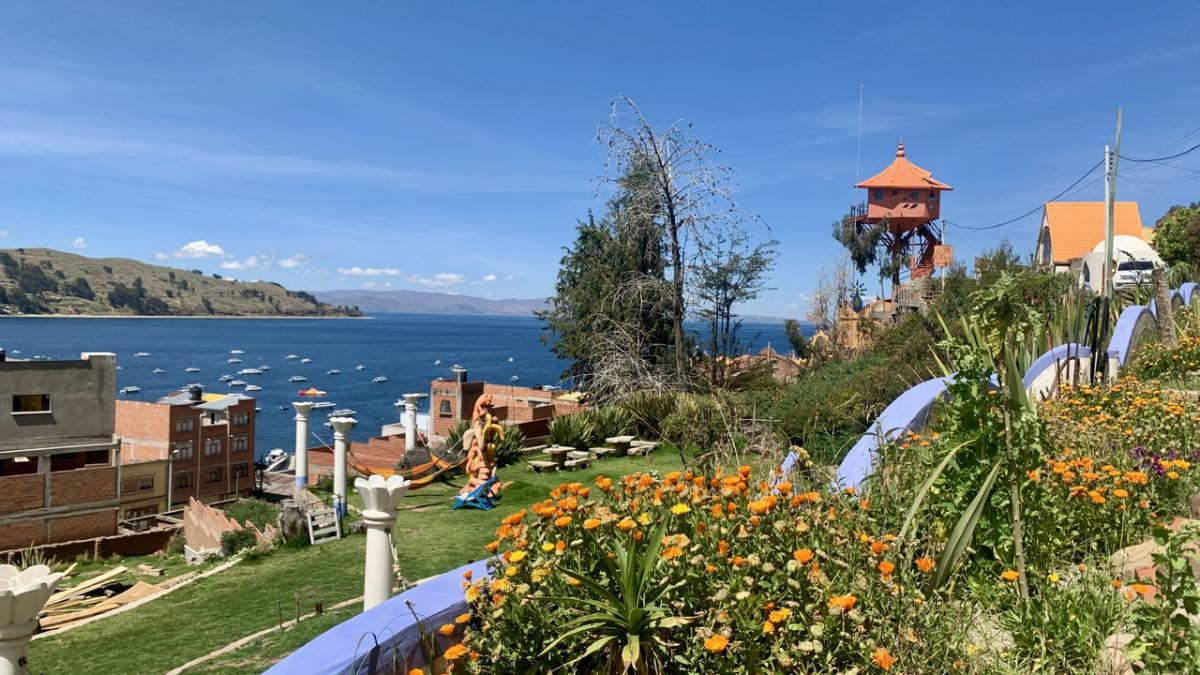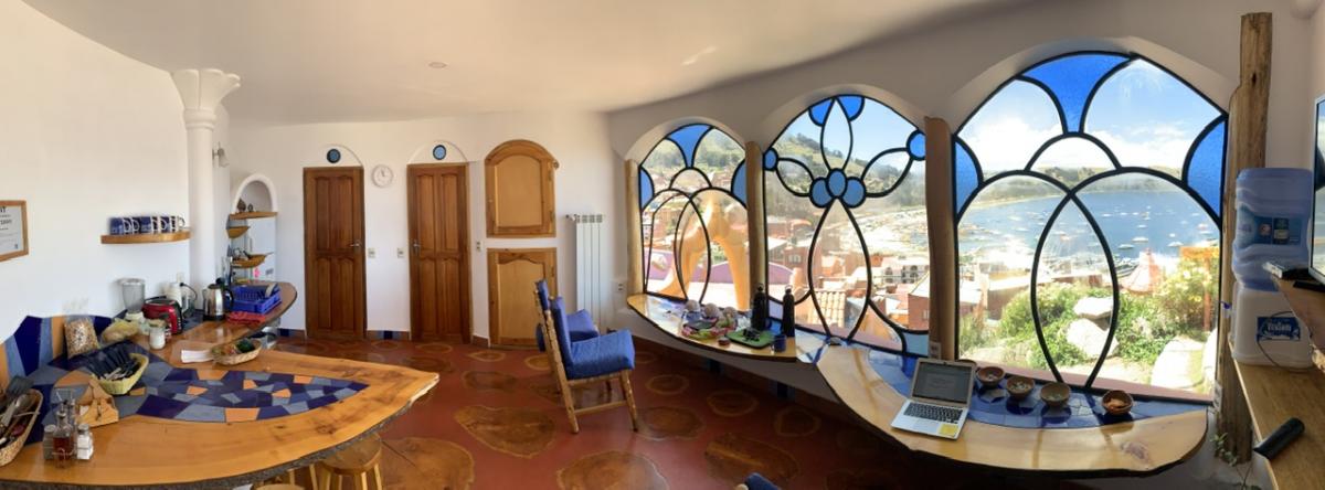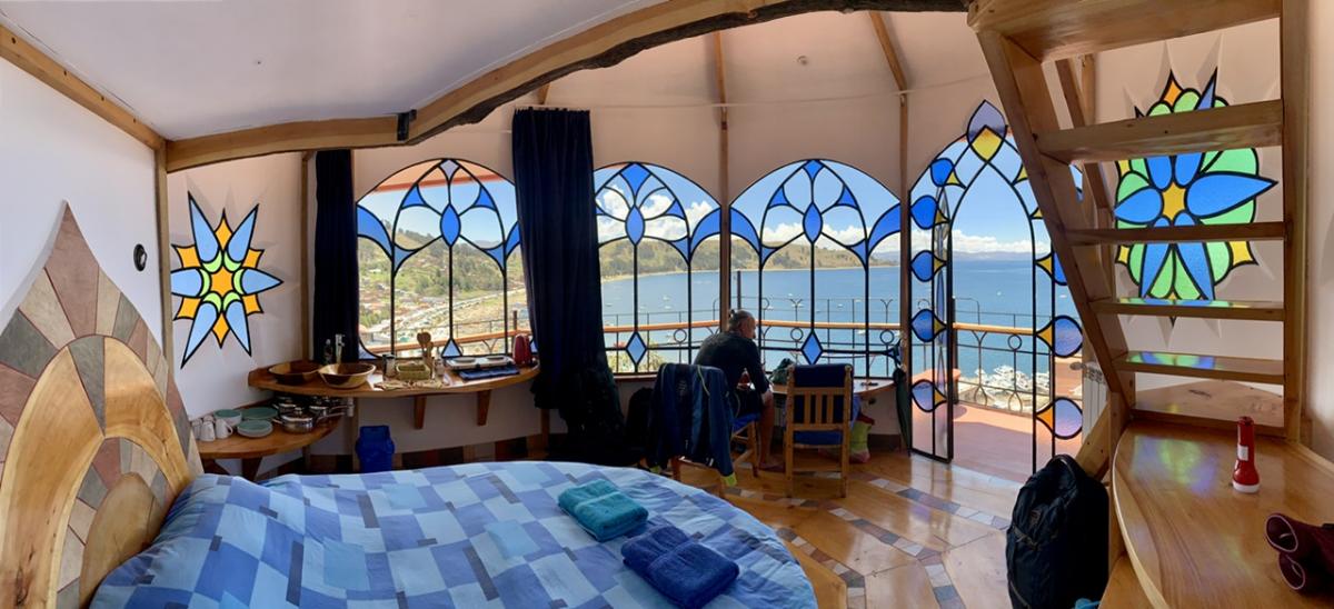 Neben der beeindruckenden Landschaft hat uns Udo hier an der Copacabana (die gibt’s auch hier in Bolivien, nicht nur in Brasilien) ein besonderes Highlight organisiert: Die nächste Woche verbringen wir in der wohl spektakulärsten Unterkunft überhaupt: Dem Las Olas.