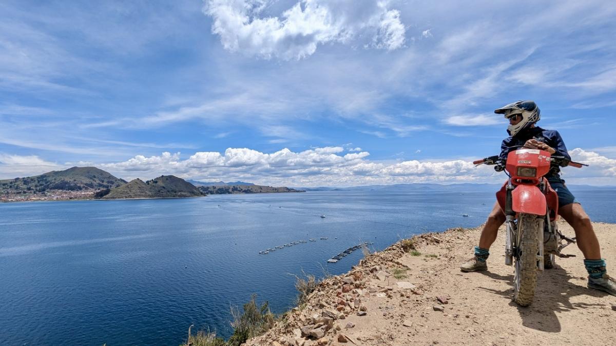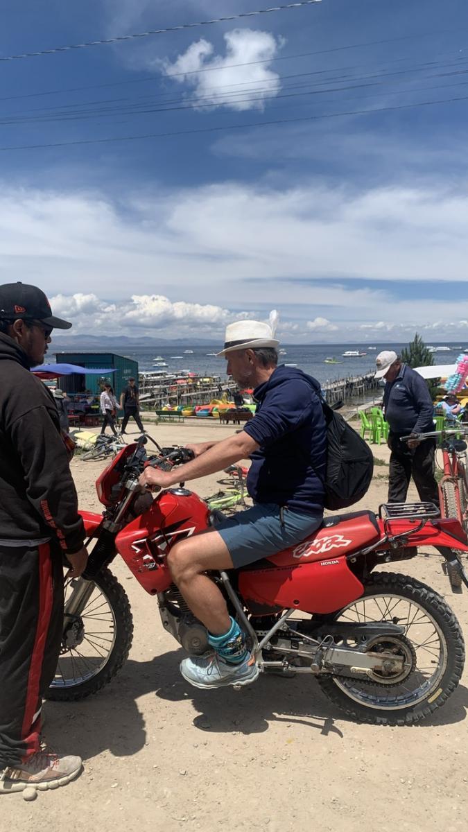 Weil schwimmen nicht in Frage kommt und unser Kalender mit Arbeitsthemen recht voll ist, sehen wir außer der Unterkunft und der Restaurantmeile im Ort, wo eine Speisekarte der anderen gleicht, die ganze Zeit nicht viel. So wollen wir uns am Ende der Woche einen Roller leihen, um den Ort und das Ufer des Sees noch etwas zu erkunden, wenn wir schonmal da sind. Wir fragen rum, wo man einen Roller ausleihen kann und werden schließlich fündig. Einen Roller gibt es keinen, dafür einen Haufen kleine Motorräder, mit denen auch die Einheimischen hauptsächlich unterwegs sind. Ich frage nach dem Preis, kriege ihn überteuert genannt, frage, ob die Hälfte auch ok ist, ernte ein Nicken, und los geht’s. Kurze Proberunde und ab die Post. Kein Name, keine Formulare, keine Kreditkarte, keine Fotos. Cash and Go 😂 – mit der Kiste ohne Spiegel oder Tacho. Für Udo und mich inzwischen ein normales Szenario, wir sind schließlich schon länger in Südamerika 😅