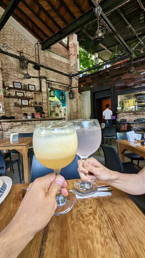 Hach, Kolumbien und ich, wir zwei matchen. Wäre ich alleine unterwegs auf dieser Reise – ich wäre womöglich in Kolumbien gleich ganz hängen geblieben 😅 Die hohen Temperaturen der Karibik machen mir nach Wochen in Brasiliens Hitze auch nicht so viel aus, wie gedacht – zum Glück. Wir lernen passenderweise auch gleich zwei weitere leckere Erfrischungen kennen: Meinen neuen Favoriten an Sommerdrinks: Soda mit Lychee Syrup und Rose; sowie Affogato: Vanilleeis mit einem Espresso drüber. Knaller!