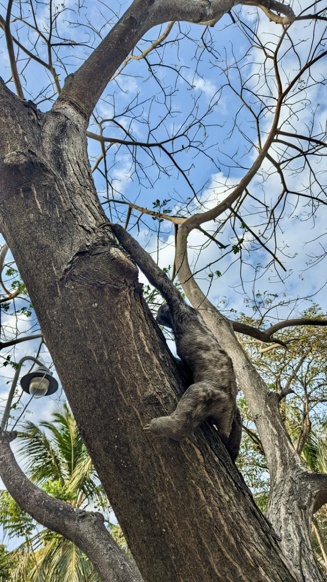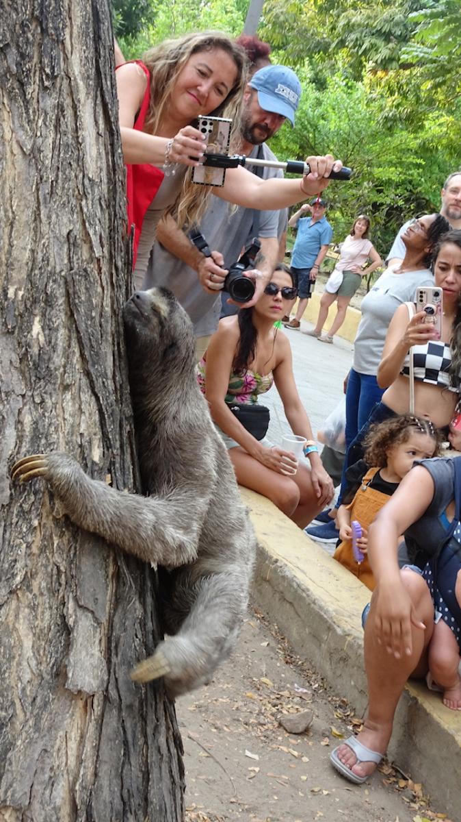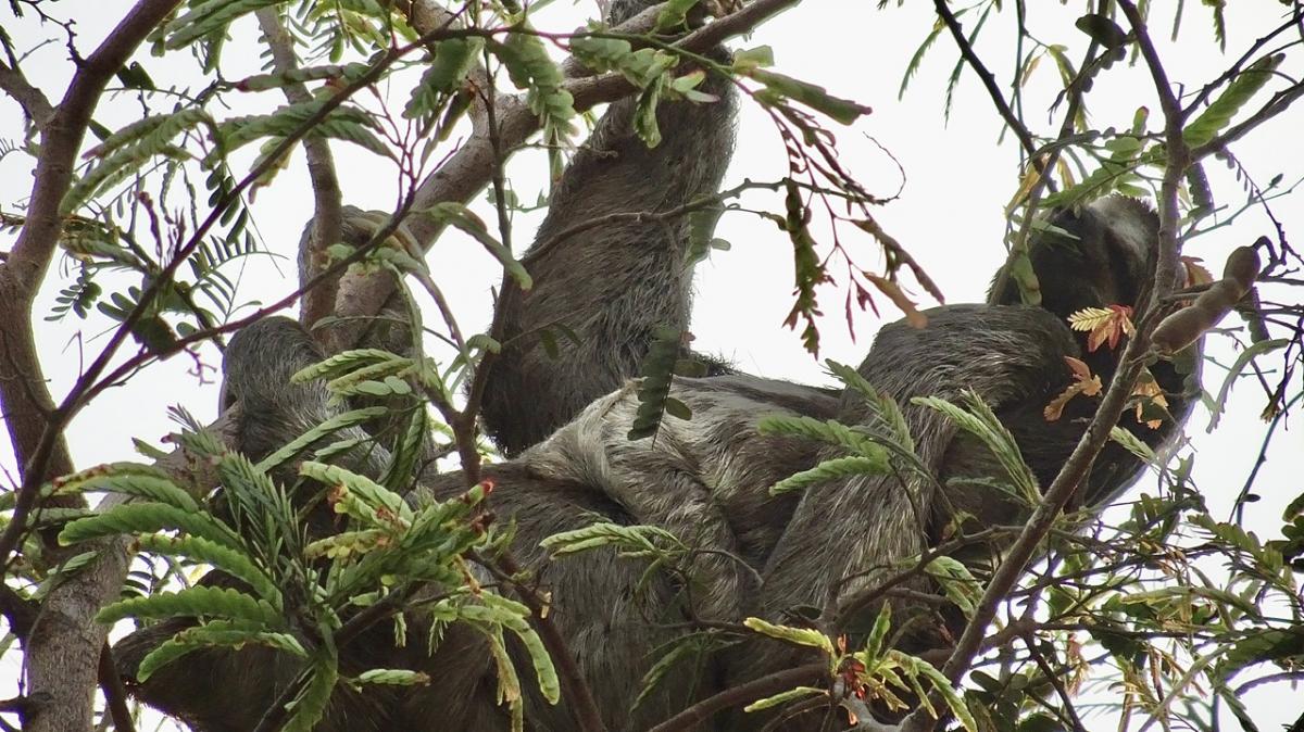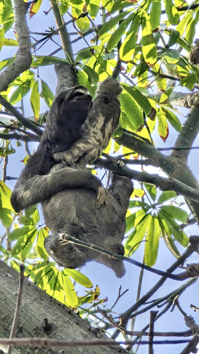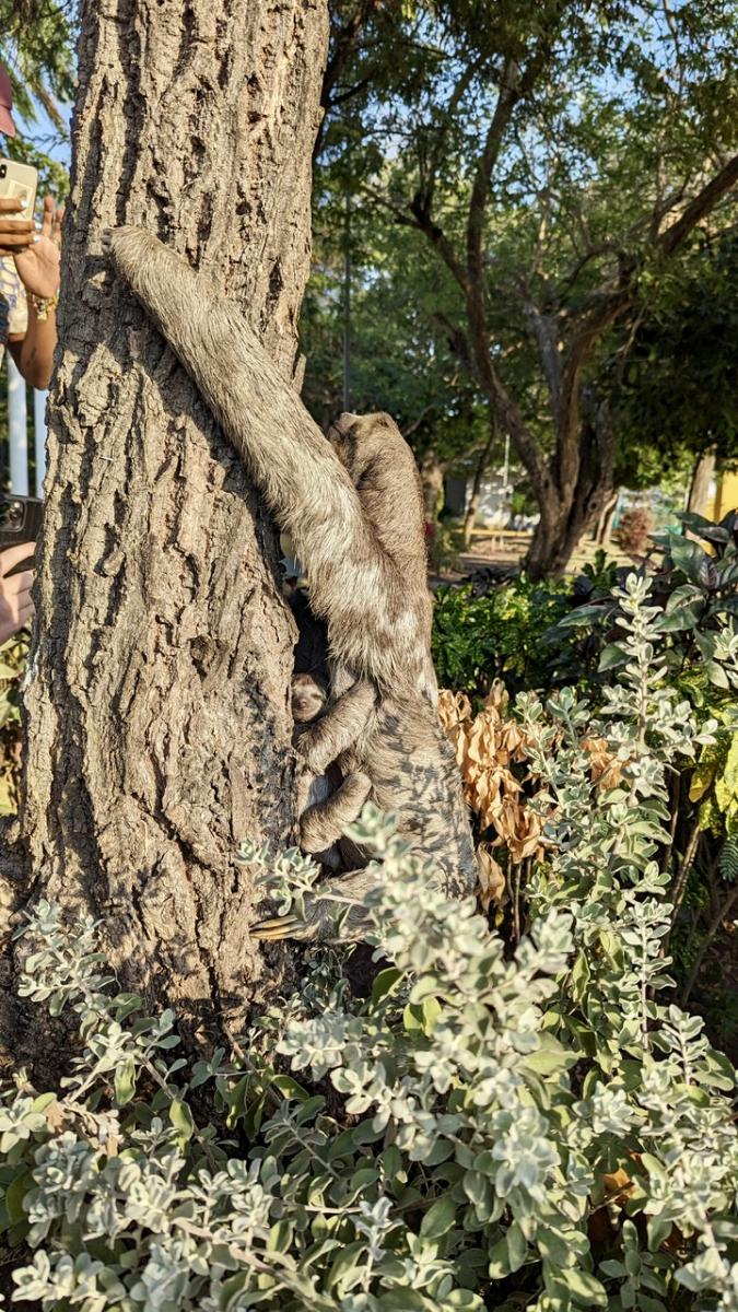 Und dann kommt etwas, mit dem wir nie und nimmer gerechnet hätten: FAULTIERE! Mitten im Park in der Stadt! Und nicht nur, dass sie einfach im Baum sitzen und schlafen, wie die meiste Zeit des Tages. Nein, sie schmeißen sich auch noch in Pose und bieten uns ein Highlight nach dem anderen zum Staunen.