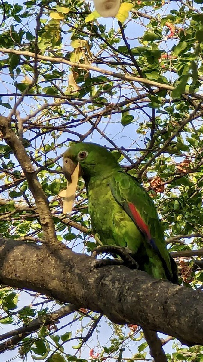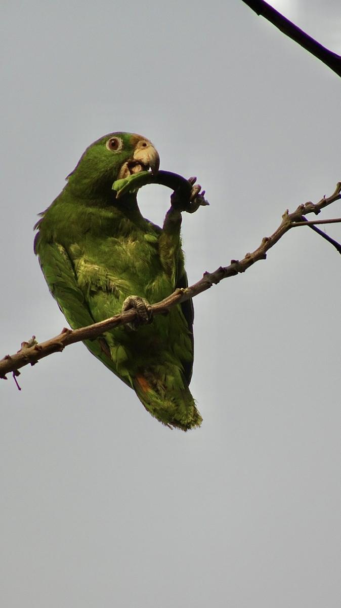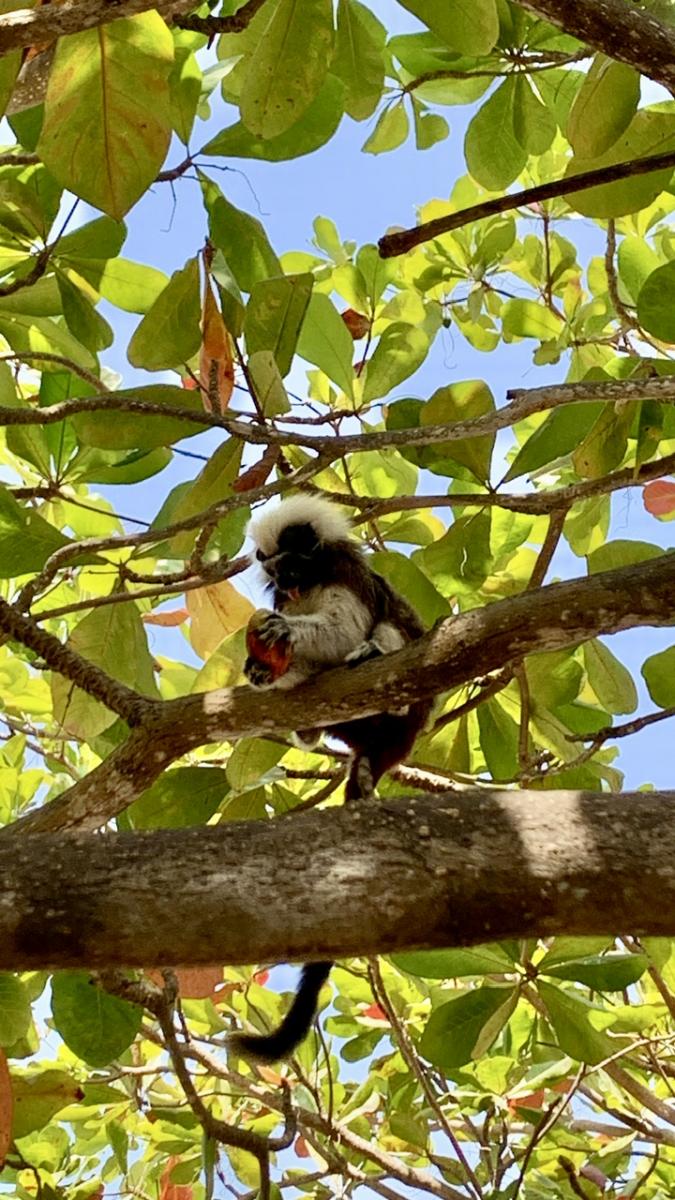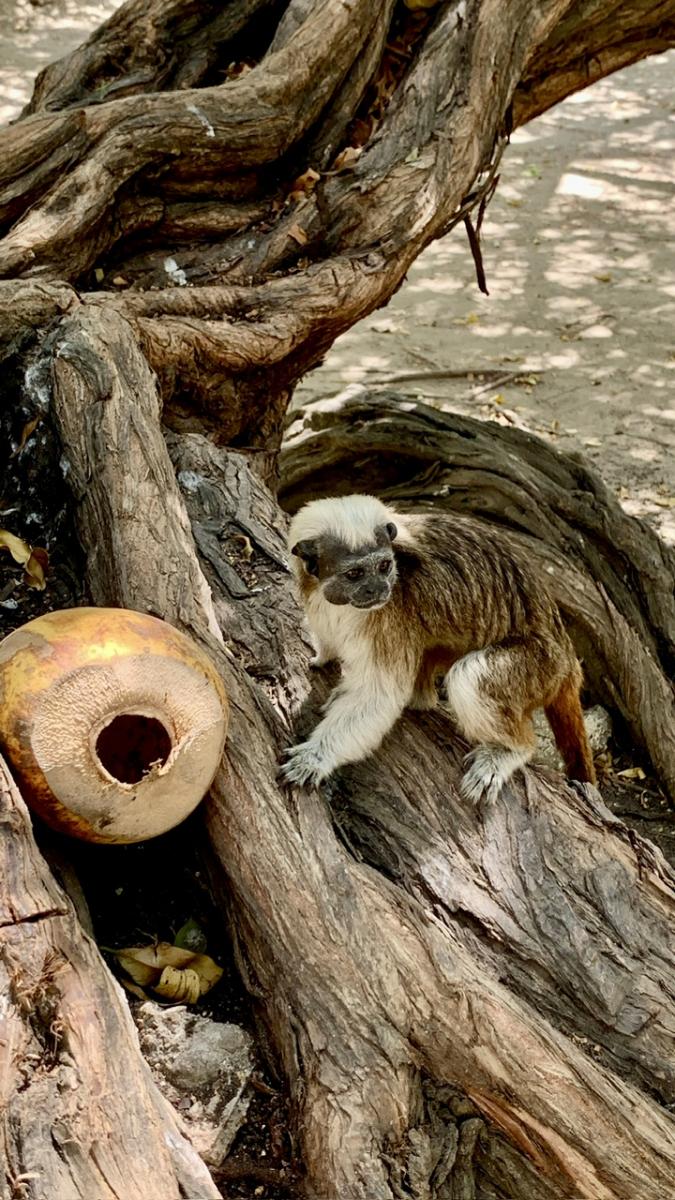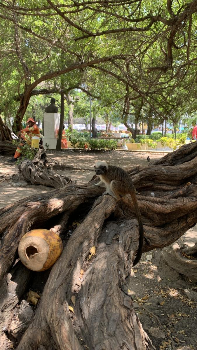 Gesättigt von den vielen Eindrücken der bezaubernden Altstadt machen wir uns irgendwann zurück Richtung Hostel und nehmen als Abkürzung den Weg durch den kleinen Park. Erst sehe ich ein paar kleine Äffchen mit dunklen Gesichtern uns weißer Fokuhila-Frisur. Dann ein paar große grüne Papageien, die genüsslich einen abendlichen Snack vor uns einnehmen. Wir geraten schon ganz aus dem Häuschen vor Begeisterung 😃