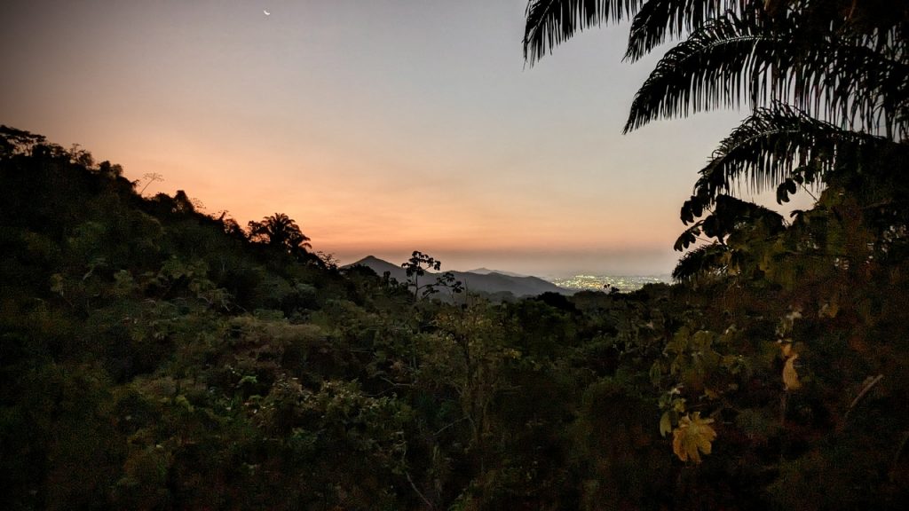 Hoch in den Bergen stimmt, allerdings meint kühl doch eher kühler. Statt 36 Grad zeigt das Thermometer „nur“ noch 33 Grad… Die versprochene Abkühlung bleibt zwar weitgehend aus, dafür ist der Blick hinab bis zur bei Nacht glitzernden Stadt Santa Marta umso eingehender.