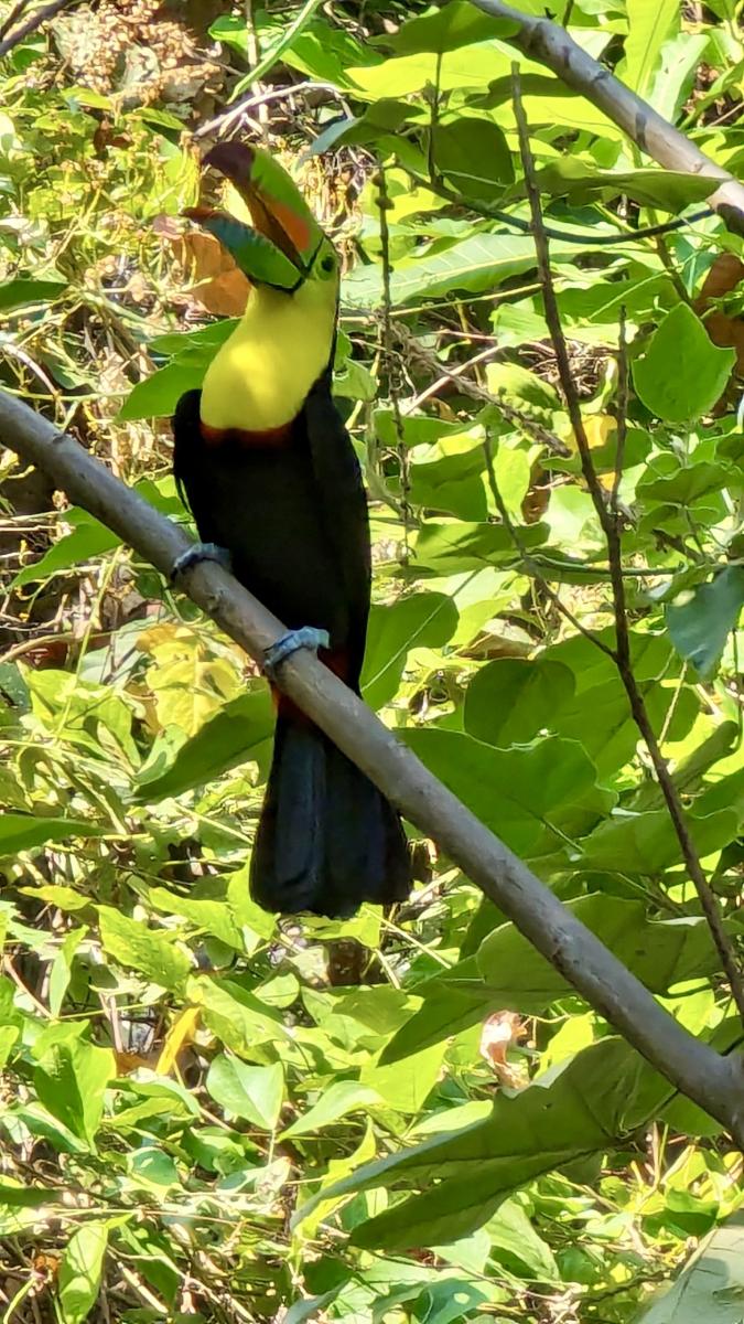Dafür ist an anderer Stelle die Nähe zur Natur einfach mega. Beim Zähneputzen Vögel beobachten, beim Duschen von Palmen umringt sein und den gesamten Berg hinab blicken. Und diese Ruhe. Außer rascheln, zwitschern und zirpen gibt es kaum etwas zu hören. Beim Frühstück sehen wir sogar einen riesen Toucan vorbei fliegen, der dann später nochmal schön vor Udos Kamera posiert :)