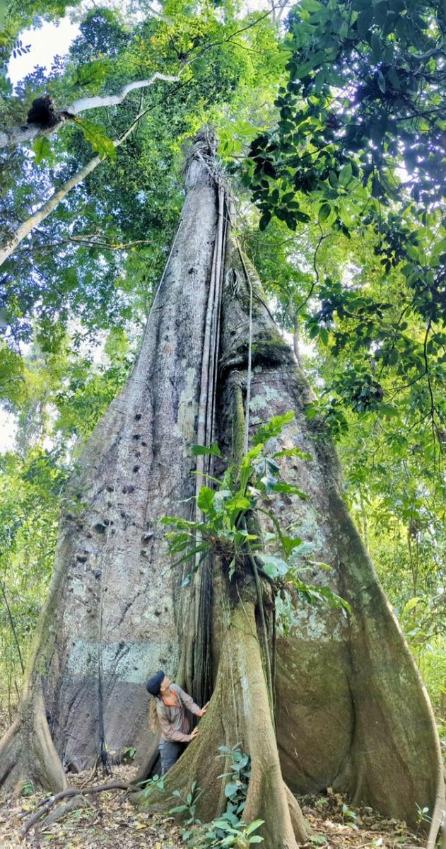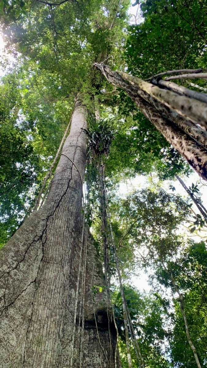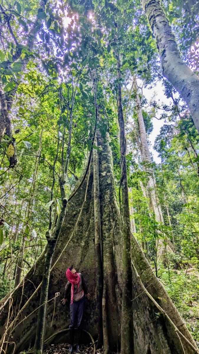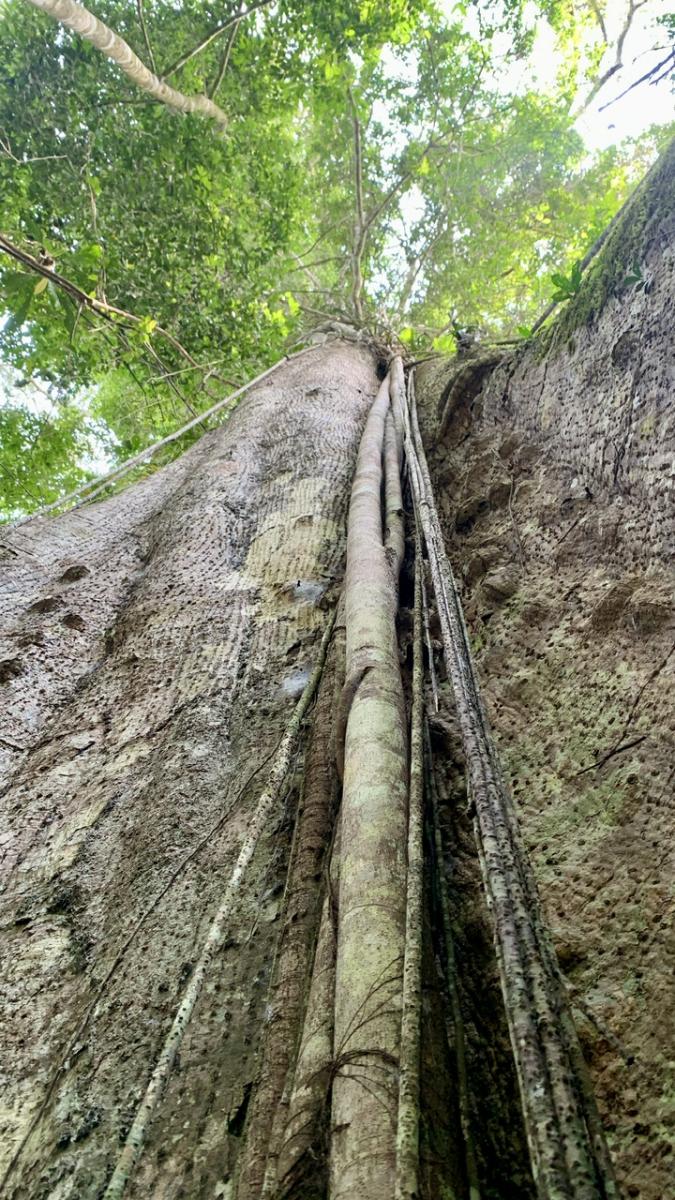 Ich empfinde sofort eine tiefe innere Ruhe, als ich den gigantischen Baum hinaufschaue. Fest verankert in den Tiefen des Dschungelbodens sendet ein einziger Baum Frieden in die ganze Umgebung. Uns wundert es nicht, dass dieser Baum von den indigenen Völkern bis heute geliebt und verehrt wird.