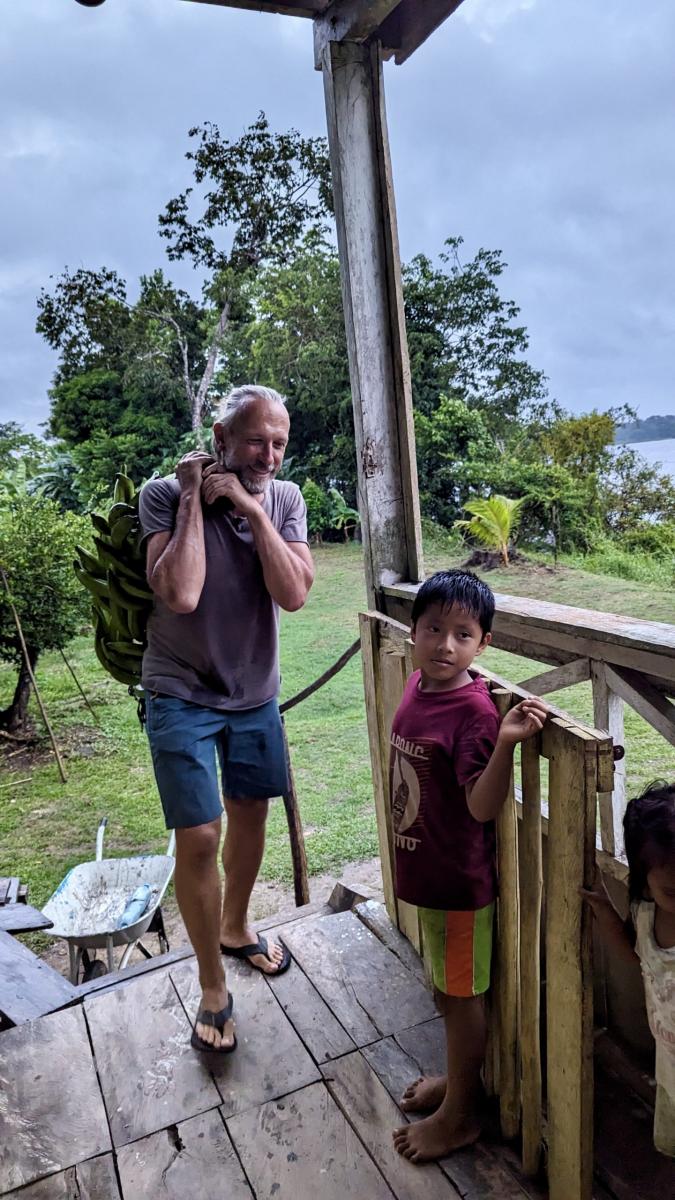 Vater Elvio, 55, ist noch nie in einem anderen Land gewesen. Er wohnt schon immer hier am Amazonas. Er möchte auch nicht weg. Seine Großeltern haben die hiesige Community um das Dorf San Martín mit aufgebaut (nicht nur freiwillig). Das Haus, in dem die Familie und wir wohnen, hat Elvio mit viel Aufwand gemeinsam mit seinem Bruder selber gebaut. Sein Bruder ist Tischler und heißt Hitler. Für die Eltern war das vor rund 60 Jahren ein “normaler” Name ohne besondere Bedeutung. Den Namen haben sie irgendwo im Kontakt mit deutschen Siedlern aufgeschnappt…