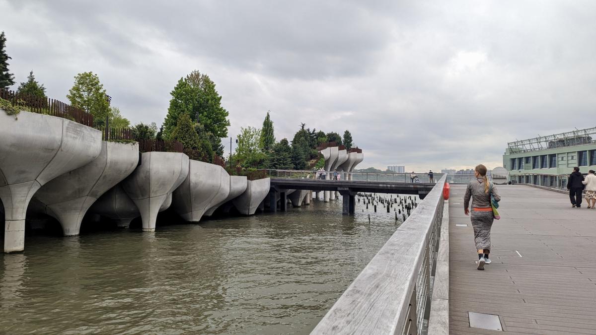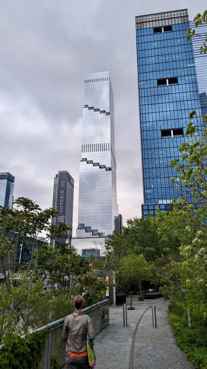 Ein schöner Spaziergang durch den High Line Park, bietet eine entspannte Abwechslung zum zügigen Marsch entlang der sonstigen Blocks und Little Island ist nochmal ein süßer kleiner Park direkt am und auf dem Wasser, der aussieht, als wäre er auf verschieden großen Martinigläsern aus Beton angelegt. Schließlich führt uns ein letzter Abstecher noch zu Carry Bradshaws Apartment, was zugegebenermaßen in der Serie etwas glamouröser und stilvoller wirkt. Vor den Dreharbeiten wurde offensichtlich auch immer die Treppe gekehrt und die Mülltonnen aus der Sicht geräumt. Auch dass an Stelle von Mister Big mit seiner Limousine jetzt Reihen von blauen City Bikes vor der Tür stehen, ändert einiges am Flair. Naja, ein bisschen Illusion darf man sich ja auch erhalten.